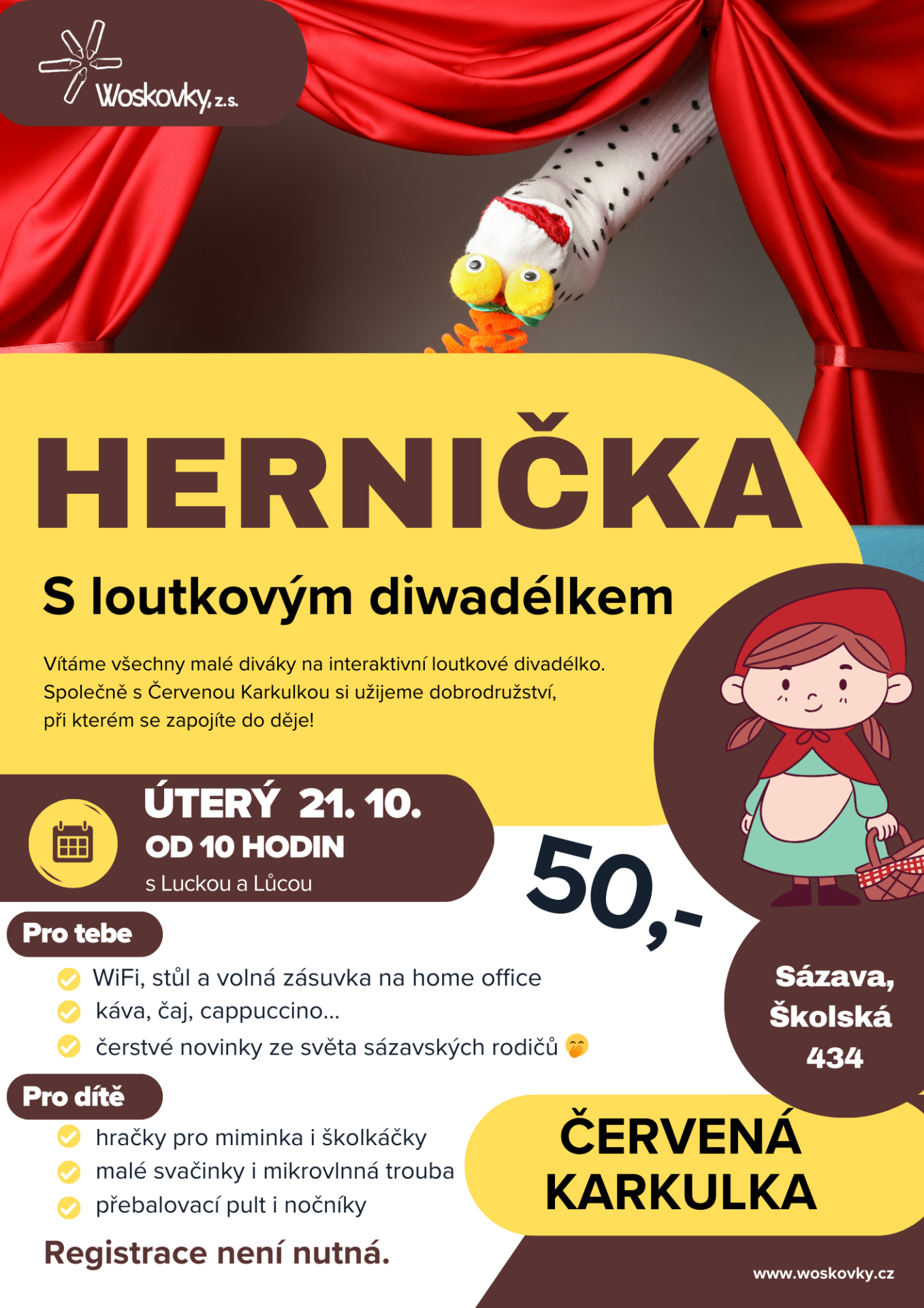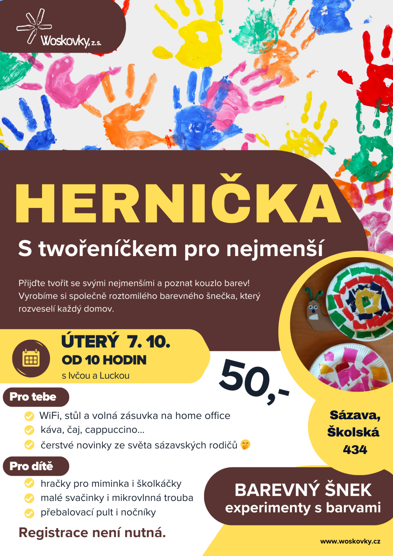 Rodičovský klub Woskovek je bezpečné a přátelské místo pro malé děti a jejich rodiče – prostor pro volnou hru, popovídání i navazování sousedských přátelství.