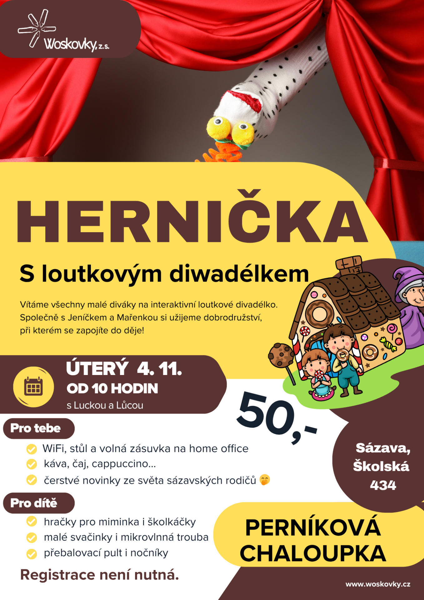 Setkáváme se v herničce (Školská 434. Sázava) každé úterý dopoledne. Děti mají k dispozici kvalitní hračky, výtvarné pomůcky i pohybové aktivity, rodiče si odpočinou u kávy nebo čaje.